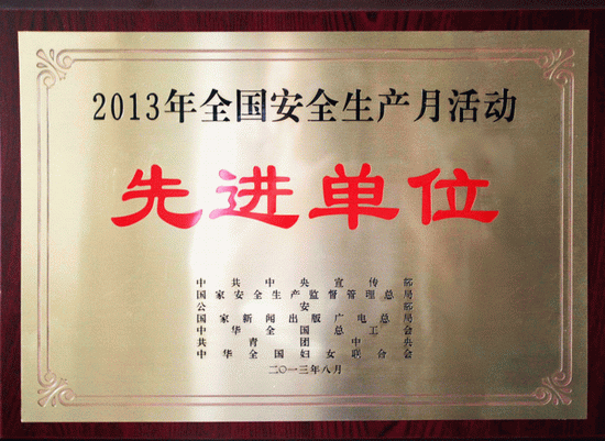 在2013年全國(guó)“安全生產(chǎn)月”活動(dòng)總結(jié)交流大會(huì)上,五礦邯邢礦業(yè)有限公司被中宣部、國(guó)家安監(jiān)總局、公安部等七部委聯(lián)合授予“安全生產(chǎn)月”活動(dòng)先進(jìn)單位殊榮。本次會(huì)議共表彰146家先進(jìn)單位,其中央企36家,邯邢礦業(yè)是全國(guó)地下冶金礦山中唯一一家獲此殊榮的企業(yè)。