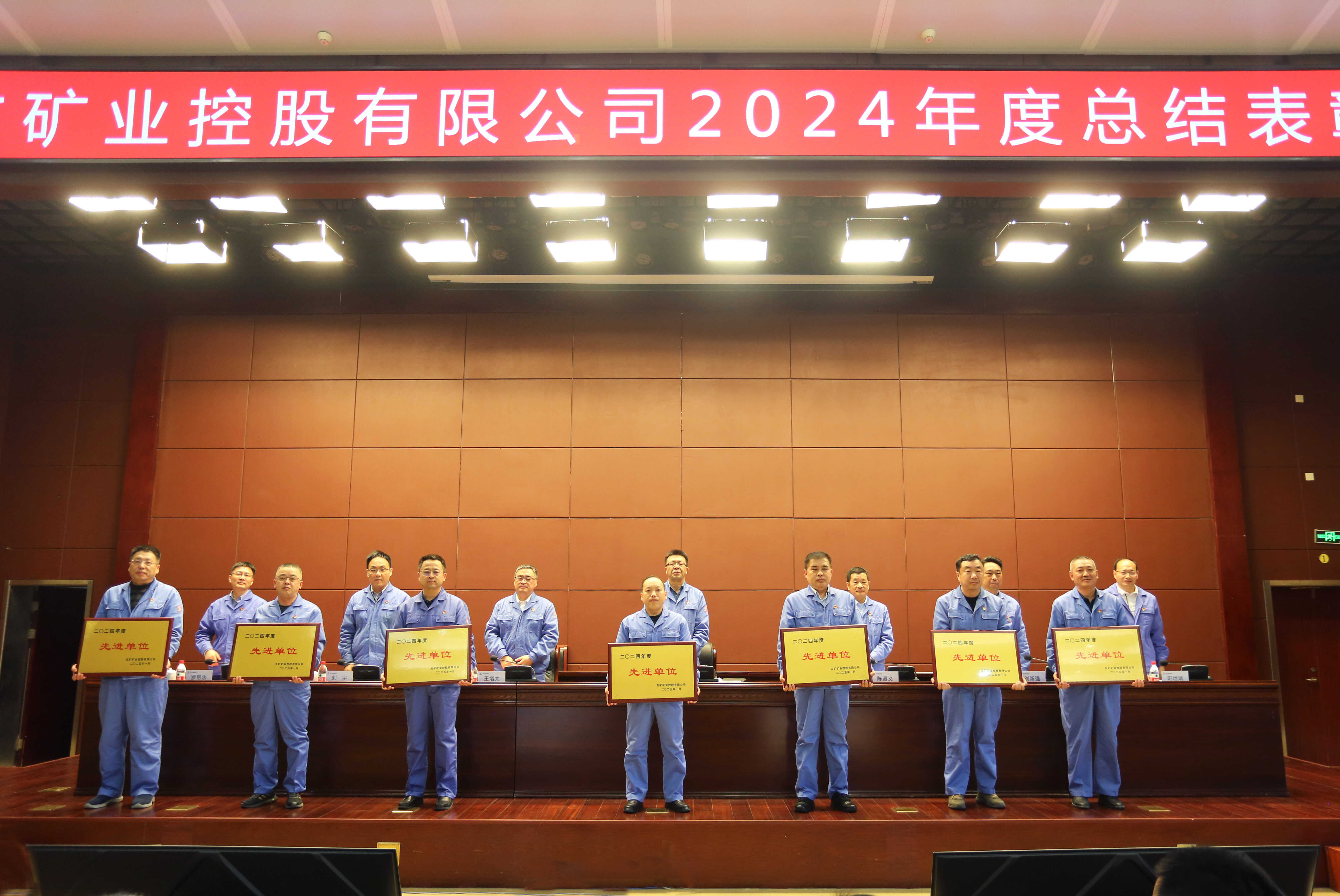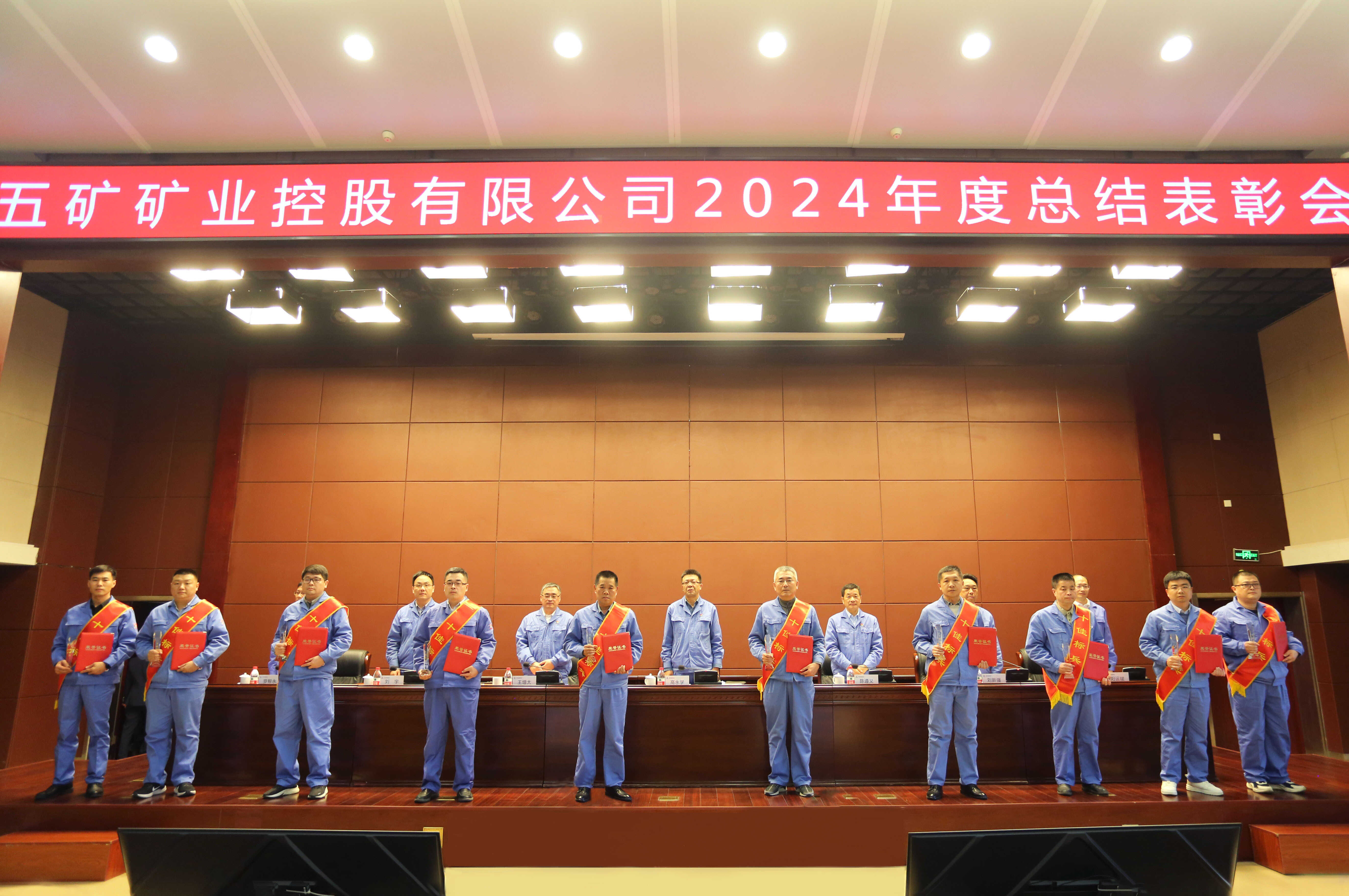 公司黨委副書記王增太宣讀了《關(guān)于2024年度五礦礦業(yè)所屬集體和個(gè)人榮獲集團(tuán)公司以上榮譽(yù)的通報(bào)》和《關(guān)于表彰2024年度先進(jìn)單位、集體和先進(jìn)個(gè)人的決定》。公司對(duì)先進(jìn)單位北洺河鐵礦、安徽開發(fā)礦業(yè)、魯中礦業(yè)、陳臺(tái)溝礦業(yè)、慶發(fā)礦業(yè)、質(zhì)量計(jì)量中心、運(yùn)銷公司,功勛員工李寶泉、蔣慶杰,“十佳”標(biāo)兵李超、楊永軍、曹學(xué)剛、趙有鑫、陳鵬剛、桂淮彬、朱明海、張大興、張俊、王順頭進(jìn)行了現(xiàn)場(chǎng)表彰。